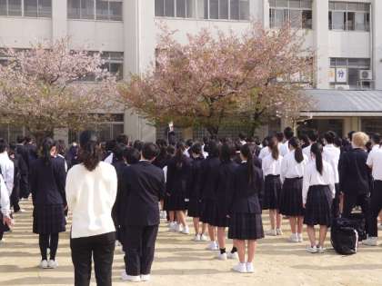 月曜日の朝は全校集会を開きます。8時25分前には皆さん運動場に集合完了。時間を大切にする意識が浸透しているようです。新学期が始まって1週間。生徒会会長さんから「何か困ったことがあれば、1人で抱え込まずに相談しましょう」との呼びかけが。気にかかることがあれば、先生や友達、スクールカウンセラーさんなどに声掛けしてくださいね。