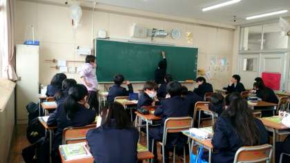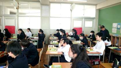 1年生英語科でアルファベットの発音を練習しています。小学校でも学習したかと思いますが、ABCから順番に26の文字を1語ずつおさらいします。「Ⅼ」と「R」の発音が難しそうですね。皆さん、くり返し練習して上手になってくださいね。