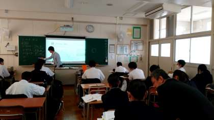 2年生数学の授業で「文字式」について学習中。xやyなど、文字を使った計算は1年生でも教わりました。今日は文字式のおさらいからスタートします。「a×b」は「×」を省略して「ab」で表すなど、いろんな約束事がありましたね。少しづつ思い出しながら中2での新しい文字式の学習を頑張りましょう。