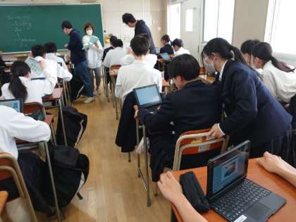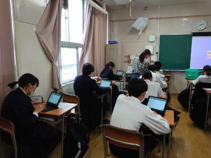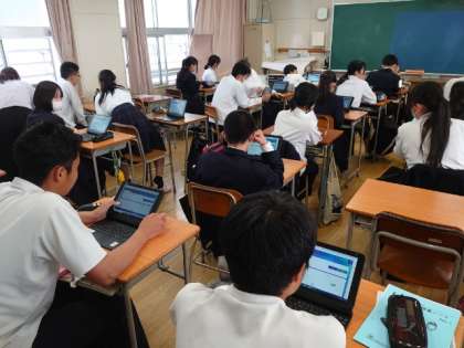 明日18日(木)実施される3年生対象の「全国学力学習状況調査」。教科(国・数)の調査に先立って、学習や生活面の質問に答える「生徒質問」調査を行いました。質問方法が、これまでの紙ベースから、インターネットを活用したオンライン方式へと変わりました。皆さん、タブレット端末を使ってQRコードを読み取り、質問に答えていきます。これからはテストもオンラインで行うタイプが増えるとのこと。今のうちに、機器の扱い方に慣れるようにしましょうね。