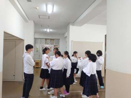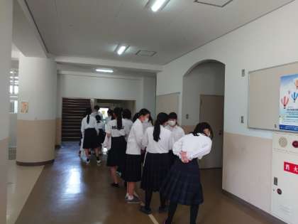 1年生内科検診が始まりました。会場の図書室前に生徒の皆さんが集まっています。聴診器を使った診察や身体のゆがみなどを校医先生に診ていただきます。聴診器が聞こえにくくならないよう、静かにスタンバイしましょうね。