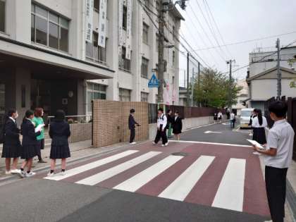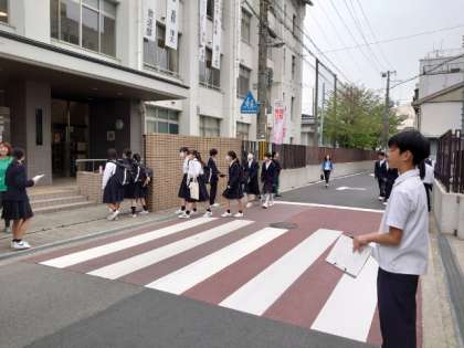 黄砂の影響か、遠くの景色が霞んで見える朝。本日16時より保護者向け「修学旅行説明会」を1階図書室で行います。6月6日(木)〜8日(土)の3日間、徳島・高知・倉敷を巡ります。3年生保護者の皆様の来校をお待ちしています。