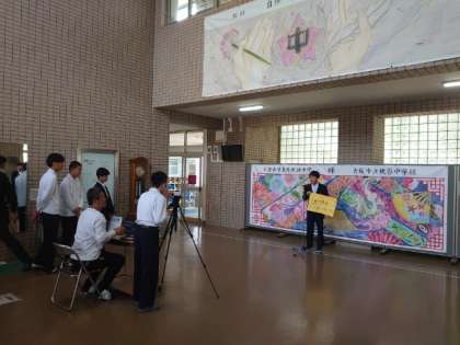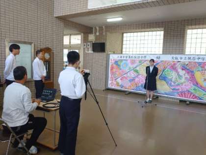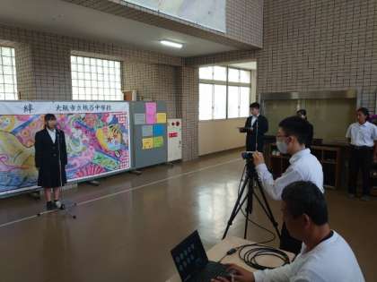 月曜日の朝は全校集会。今朝は運動場のコンディションがよくないので、玄関ピロティと各教室をオンラインでつないで、集会を行いました。生徒会役員や各委員会の代表者が集まり、月間目標を発表してもらいました。目標が書かれたポスターも校舎のあちこちに掲示されています。目標をしっかりと意識して、みんなで学校を盛り立ててくださいね。