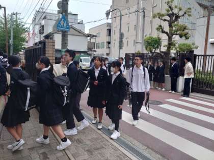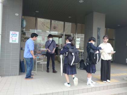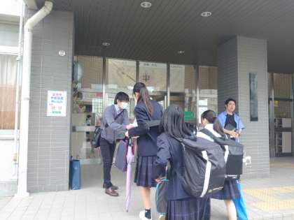 雨は降っていませんが、鉛色の雲が空を覆う朝。正門玄関では、先日撮影した学級写真の申し込みを受け付け中。今日・明日の登校時間帯に、写真屋さんが来てくださいます。購入を希望する皆さんは申し込んでくださいね。