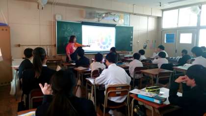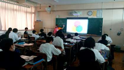 1年生美術の授業で「色」について教わります。シアン(青緑)・マゼンタ(赤紫)・イエロー(黄な色をつくってみたいですか?