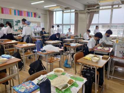 午前の授業が終わり、お昼ご飯をいただきます。現在、3年生の皆さんが協力して給食の用意をしています。今日は「きんぴらちらし・すまし汁・ちまき」の行事献立。「こどもの日」にちなんで、ちまきがついているそうです。少し早いですが、こどもの日をお祝いしましょう。