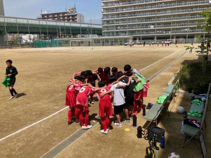 サッカー部は大阪市春季大会ベスト8を目指して東我孫子と対戦しました。非常に中盤の能力が高く格上の相手です。