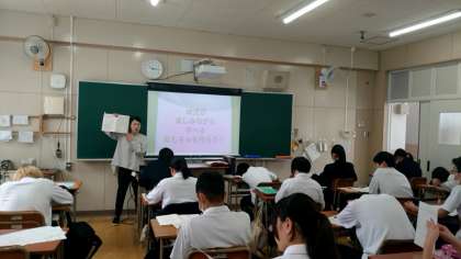 3年生家庭科の授業で「幼児向け」の絵本制作が始まります。フエルト生地を使ったフワフワの絵本を作るそうです。まずは絵本のストーリーや図案を考えるところから。小さい子どもが喜ぶ姿を思い浮かべながら、楽しい作品(絵本)を作ってくださいね。