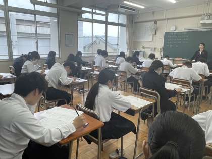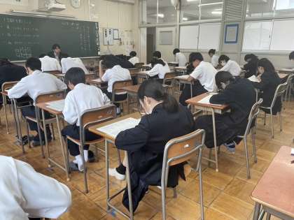 1時間目は英語、2時間目は国語、3時間目は社会です。久しぶりの定期テストで予鈴ギリギリに片付けをしている人がいたり机の中に教科書が残っていたりと慌ただしい始まりとなりました。