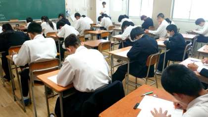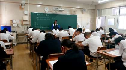 3年生の皆さんも最後のテストを頑張っています。授業で教わった「物質の電気分解」の問題が出題されていますね。実験の様子や先生の解説をよく思い出して、答えを導き出してくださいね。このテストが終われば、少しホッとできますね。