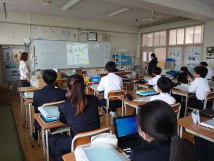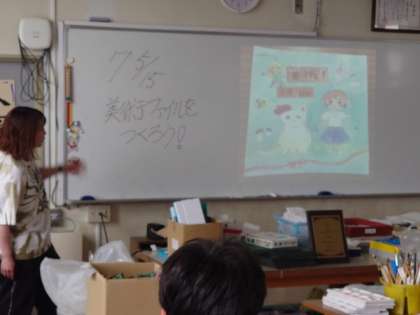 1年生美術の授業で透明なファイルが配られました。授業のプリントや制作記録を3年間保存するための美術科専用のファイルです。先生から「表紙のデザインを考えるように」と、指示がありました。スクリーンに映された先輩方の作品を参考に、ステキな表紙を制作してくださいね。