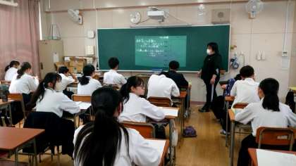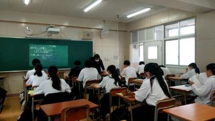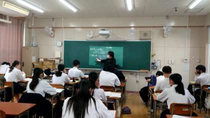 3年生数学の授業で「文字式の証明」を教わります。「2つの連続する奇数の積(かけ算)に1を足すとどんな数になるか?」を文字式を使って証明します。連続する奇数を「2n−1、2n+1」として考えるそうです。先生の解説をよく聞いて証明の手順をおさえましょう。