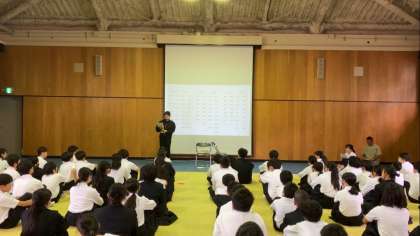 学年集会では、出口先生から「自分の言動や行動を見直そう」というお話がありました。