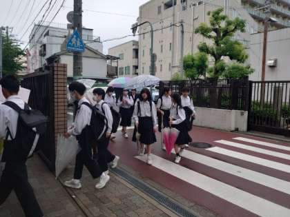 灰色の雲からポツリと雨粒が落ちる朝。来週木曜日(6月6日)から3年生が修学旅行に出発します。前日の5日(水)は準備のため、3年の皆さんは給食をいただいたら下校となりますが、水着やおやつ等、準備できる物は今週末にしておきましょう。