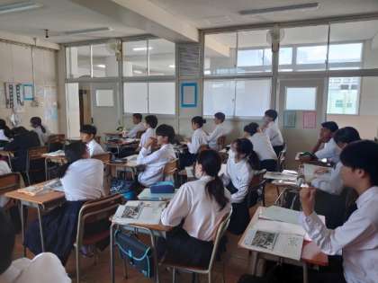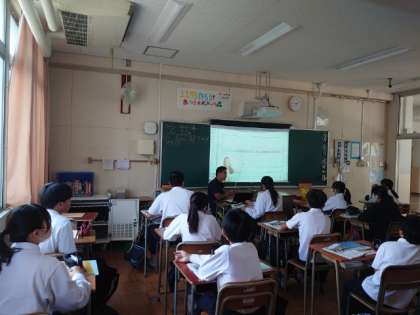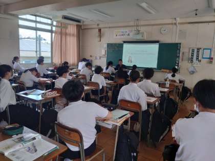 2年生英語の授業で「不定詞」を学習します。「to+動詞の原形」で「〜すること」や「〜するために」という意味になります。授業では映像教材を使ってレッスンします。実際によく使われる文法なので、しっかりマスターしてくださいね。