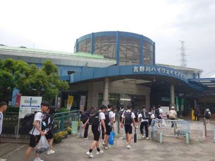 バスは吉野川ハイウェイオアシスに到着しました。少し早めにお昼ごはんをいただきます。