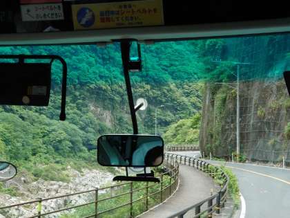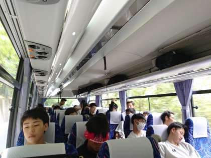 バスは四国山地の奥深くへと進みます。緑豊かな大自然が桃中生を迎えています。