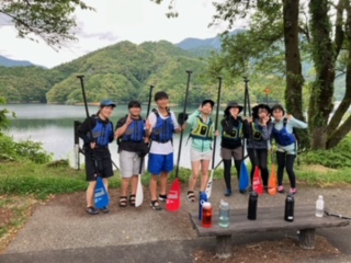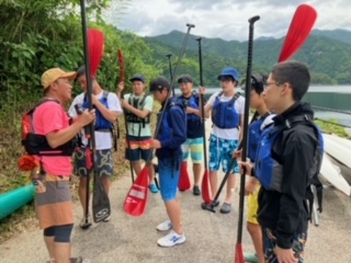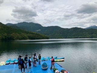 初めてのパドルや雄大な景色にドキドキしながら最初のレクチャーをしています。もうすぐ漕ぎ出していきますよ!!