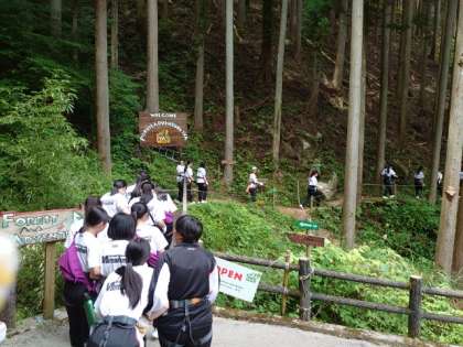 緑の小道を進んでいくと、フォレストアドベンチャーのコースに到着です。