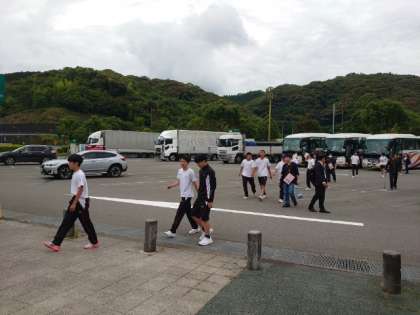 それぞれの場所で自然体験を楽しんだ後、バスは南国サービスエリアで合流しました。これからホテルに向かいます。高知県は徐々に雲が厚くなっていますが、雨は大丈夫そうです。