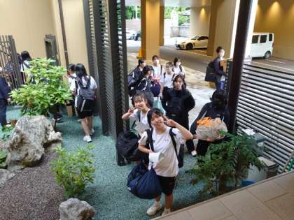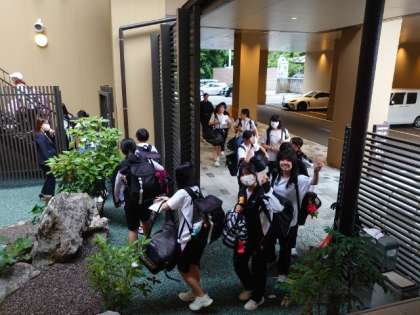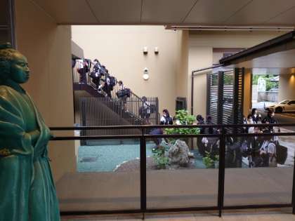 ホテル中庭に集合後、お部屋へと移動します。今晩お世話になる「三翠園」さん。高知市の4つ星ホテルです。