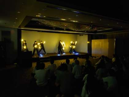 本日最後の活動プログラム「学年レクリエーション」が始まりました。オープニングはレク係の皆さんによる「ルミカ」を使ったダンスパフォーマンスです。