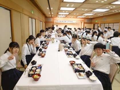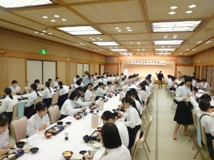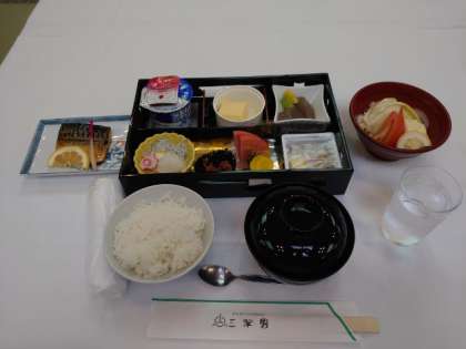 朝食メニューは旅館ならではの和定食。皆さん、しっかりいただきましょう。