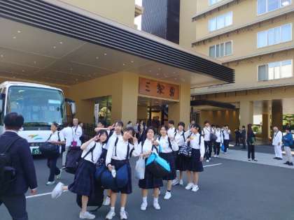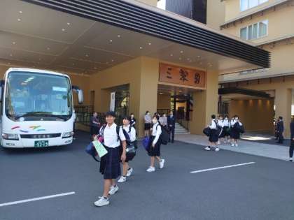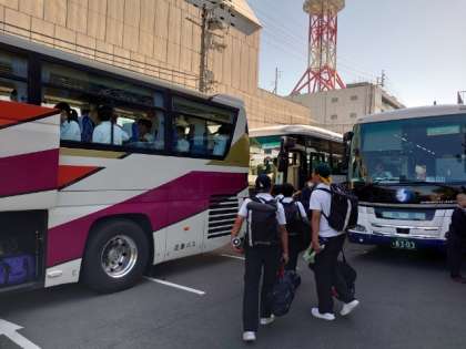 皆さん、バスに乗車します。これから徳島県に戻ってラフティングを満喫します。