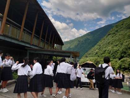 バスが出発するまでの間、仲間と一緒に自由な時間を楽しんでいます。豊かな緑に囲まれて、写真を撮ったり、ふざけあったり、仲間と過ごすひとときが宝物です。
