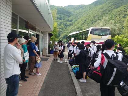 別の民泊グループが入村式を行っています。本日受け入れていただくお家の方々にごあいさつ。温かく迎えてくださった地元の皆様、ありがとうございます。