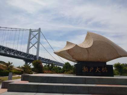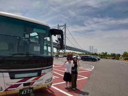 バス1号車が与島パーキングエリアに到着しました。薄い雲が広がっていますが、陽射しが届いています。