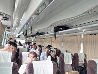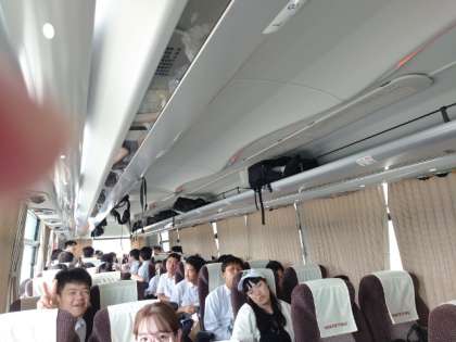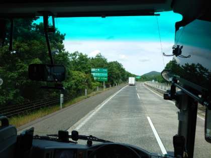 バスは高速道路を東へと進んでいます。渋滞の加減によりますが、今のところ17時過ぎに学校に到着する予定です。