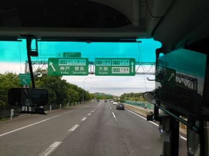 バスは神戸市北部を走っています。車内は音楽に合わせて合唱&手拍子が始まりました。