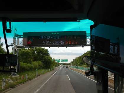 宝塚あたりで若干の渋滞が発生している模様。ナビでは18時前に学校到着の予想になっています。