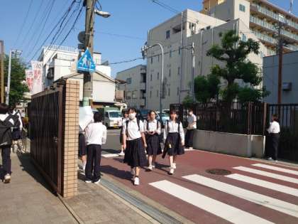朝から強い陽射しが照りつける朝。皆さん元気に登校してきました。水泳の授業で着用する水着の販売が、6月24日(月)・25日(火)に決まりました。詳しくは昨日配付しましたプリントをご確認ください。
