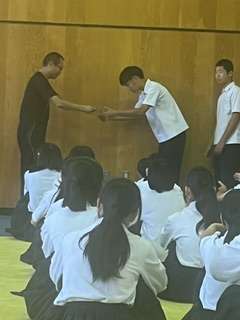 今日は修学旅行で行ったレクリエーションの表彰を行いました!夜レク優勝は3組でした!おめでとうございます!