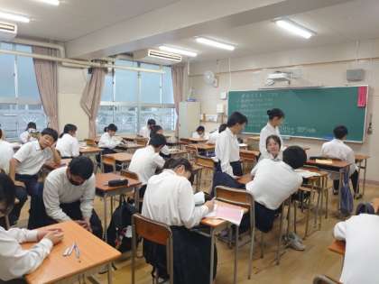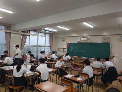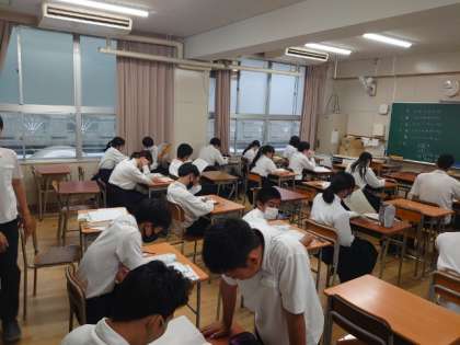 今日は3年生実力テストを実施します。テスト開始前の教室は、ノートやワークを手に勉強する姿が見られます。今、確かめている内容が出題されると良いですね。