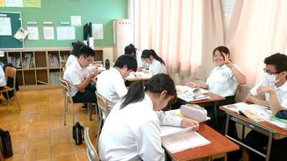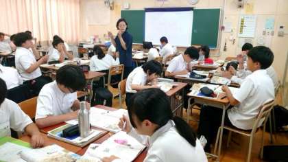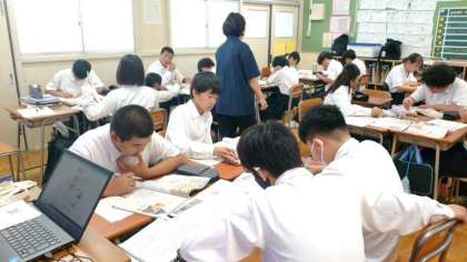2年生社会科の授業で「安土桃山時代」を学習しています。今日は、織田信長と豊臣秀吉の政治の取り組みについて、グループで意見交換を行います。歴史的にも有名な2人の政策を比較してみましょう。