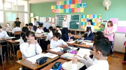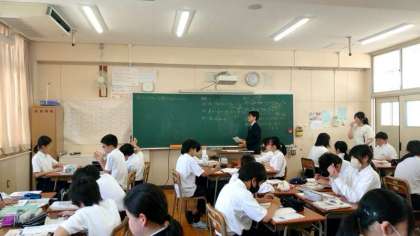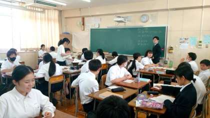 教育実習の先生が研究授業を行います。1年生数学科で「文字式の計算」を指導します。今日はグループ学習の形で学びを深めます。多くの先生が参観されたので、1年生の皆さんもちょっと緊張気味です。