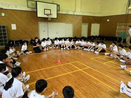 「ハートアクティビティ」が続きます。みんなで輪になって、小さなボールを回しています。息をぴったりと合わせて頑張りましょう!