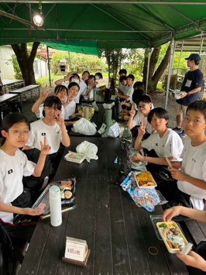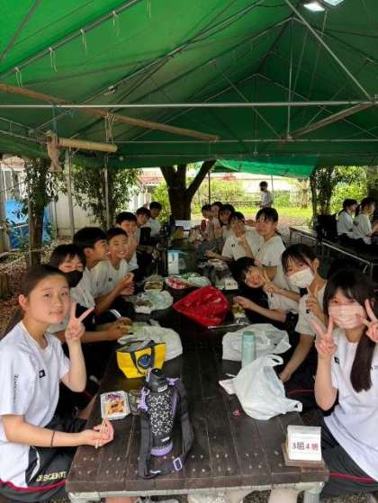 1年生の皆さん、午後の活動にむけて、しっかりといただきましょう。