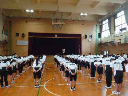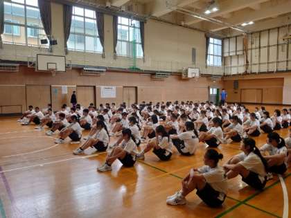 学校では2年生の皆さんが球技大会を開いています。今回は「ドッジボール」で優勝を競います。白熱したゲームを楽しみにしています。