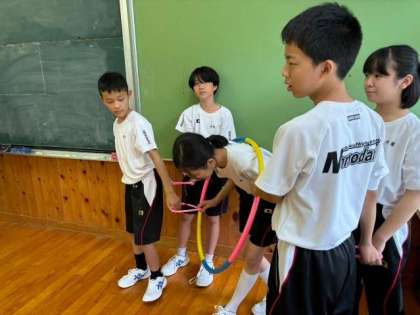 フラフープを使ったアクティビティもあるようですね。皆さん、ワイワイと楽しみながら午後のひとときを過ごしています。