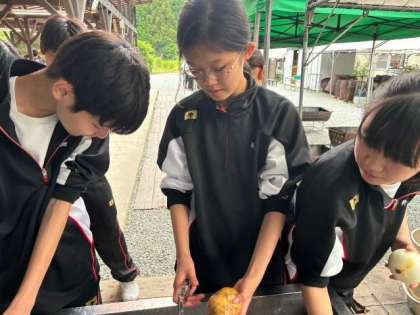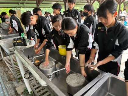 本日の午後の活動プログラムの最後は「野外クッキング」。みんなで協力して晩ごはんを作ります。