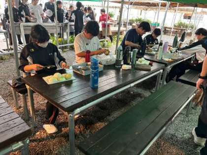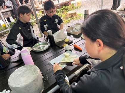 皆さん協力して調理中。「美味しくなぁれ」と、気持ちを込めて、一所懸命に頑張っています。