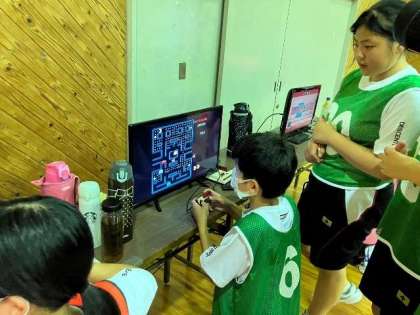 夜の活動が始まりました。ビデゲームやタブレットを使ったゲームなど、バラエティー豊かです。