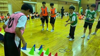 輪投げ競争も行いました。たくさん入ったでしょうか?
