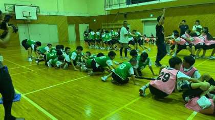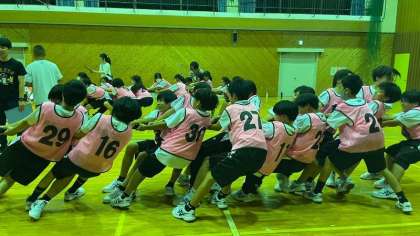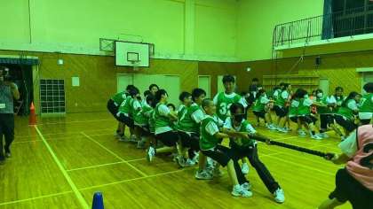 室内オリンピックのクライマックス「クラス対抗綱引き大会」が始まりました。