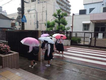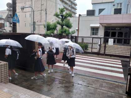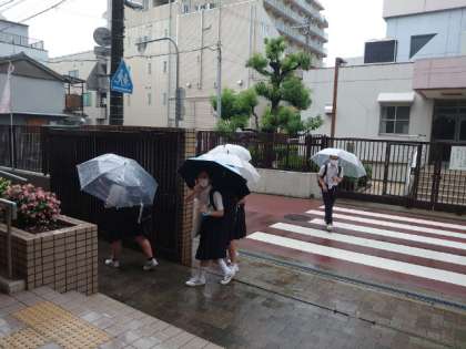今週2回目の強い雨が降る中、2、3年生が登校してきました。本日の午後、3年生が「大阪ビジネスフロンティア高校」に見学に出かけます。実際の高校生活を見聞きできる機会です。いろんなお話をうかがってくださいね。