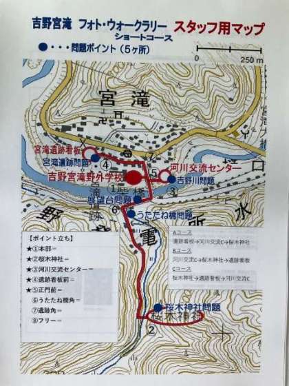 吉野では晴れ間が見られ、野外のコンディションが良くなってきたので、宿舎周辺を巡る「ウォークラリー」を行うことになりました。